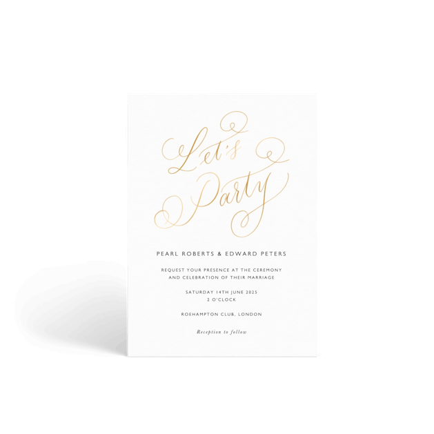 Source : www.etsy.comLet’s Party Calligraphy | Foiled Wedding Invitation | Papier